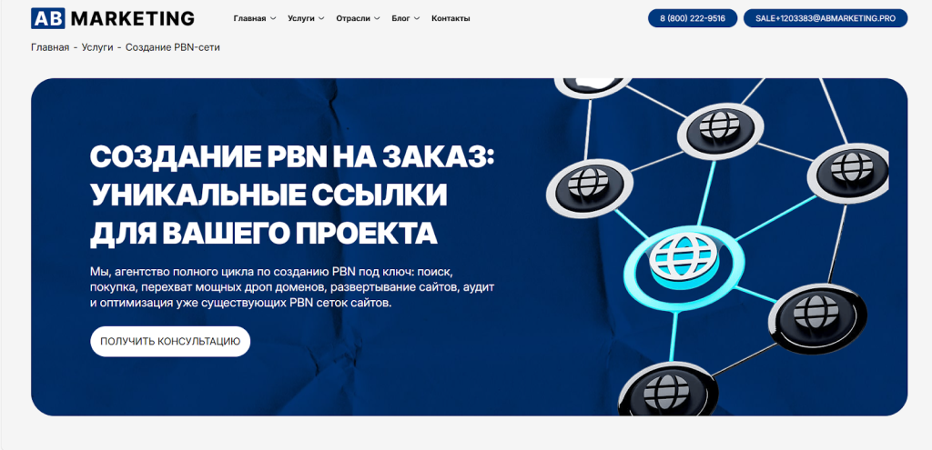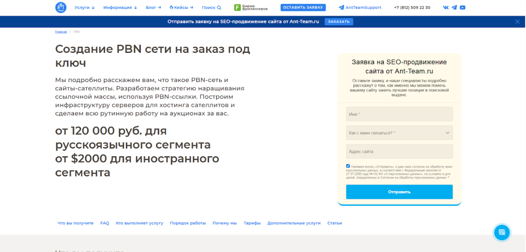 Они предоставляют отдельные услуги для приватных сетей, проводят консультации и работают на доменах клиентов. Мы рассмотрим только одну услугу — создание PBN-сети с нуля. В ее рамках вы получите готовую сеть, которую компания обновляет и поддерживает. Варианта создания 3: